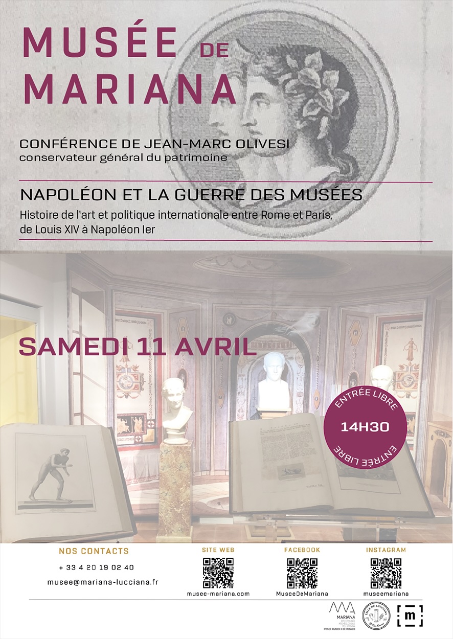 « Napoléon et La guerre des musées : Histoire de l’Art et politique internationale entre Rome et Paris, de Louis XIV à Napoléon Ier », par Jean-Marc Olivesi, conservateur général du patrimoine, actuel directeur de la Maison Bonaparte à Ajaccio (Musée national)
