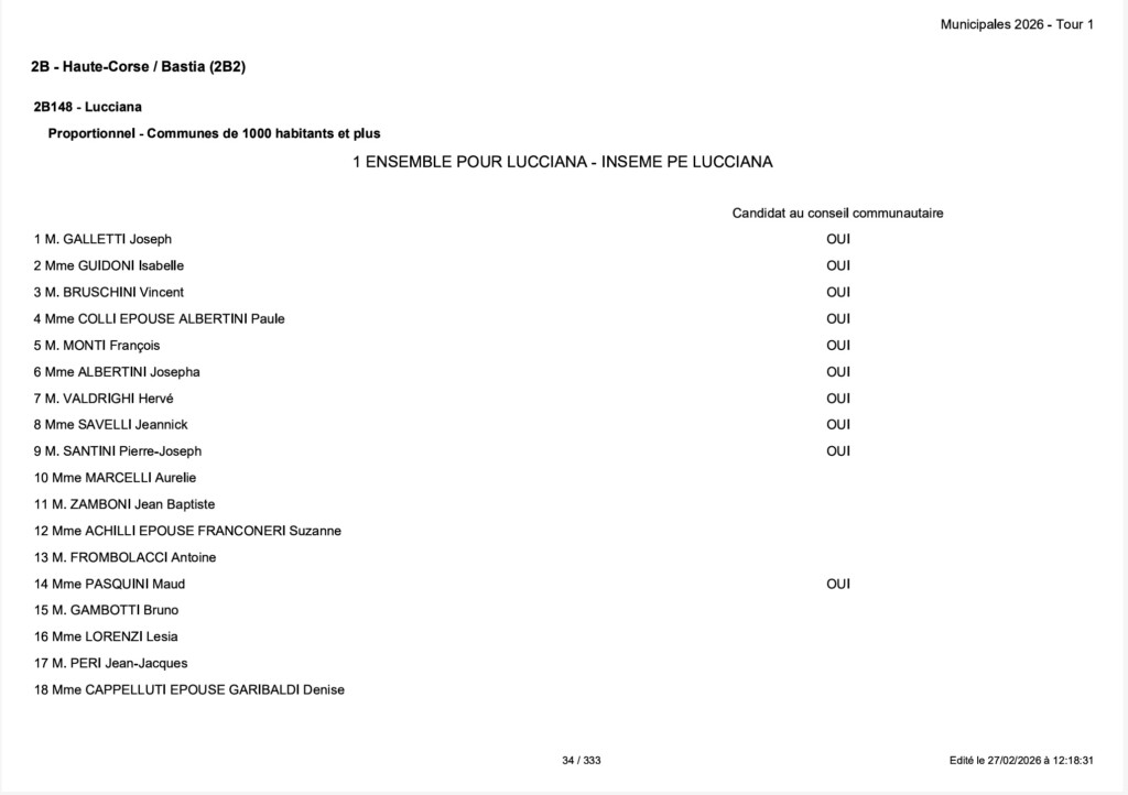 Connaitre son bureau de vote : Le bureau N°1 est situé au Village de Lucciana (ancien bâtiment communal) Quartiers concernés : U Paese – Piedigatti – Camputolu – Cattari – Querci – Crucetta Ouest