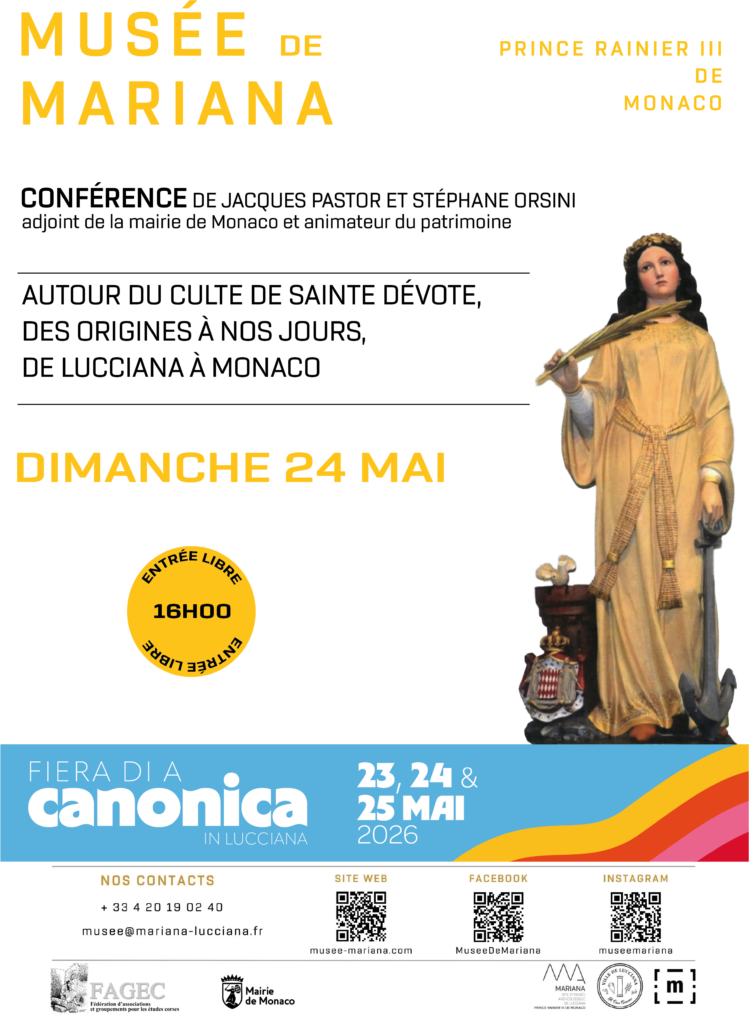 Comme chaque année, la municipalité de Lucciana organise la foire multiséculaire qui célèbre la Pentecôte du 23 au 25 mai. Le musée s’associe à cet événement festif et cultuel en proposant deux conférences étonnantes ! Attention c’est toujours gratuit mais exceptionnellement à 16H.