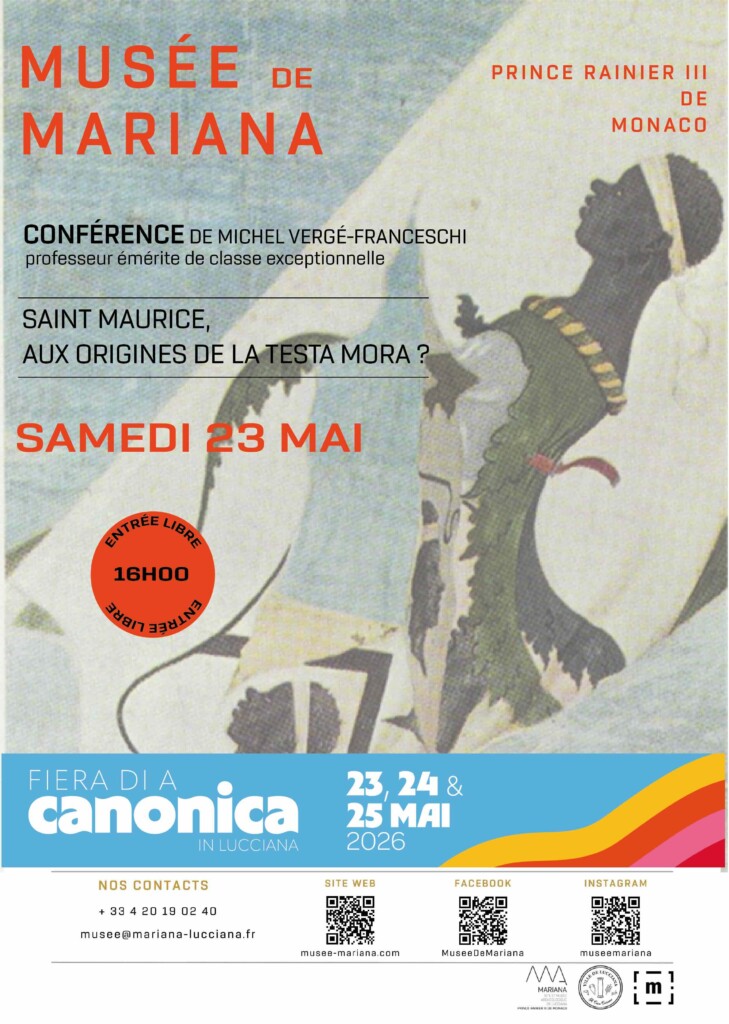 D’où vient la tête de maure aux origines de la Bandera ? Notre éminent conférencier, aux multiples ouvrages majeurs publiés, présente l’histoire de ce symbole caractéristique de notre île en s’appuyant sur ses premières apparitions, ses variations et ses récupérations politiques. Comment saint Maurice, venu d’Égypte, devient chef du saint Empire germanique puis arrive en Corse par l’entremise de Théodore de Neuhoff, furtif roi de Corse, pour ensuite être assimilé par Pasquale Paoli et respecté par Louis XV en personne. Une conférence qui s’annonce aussi étonnante que passionnante !