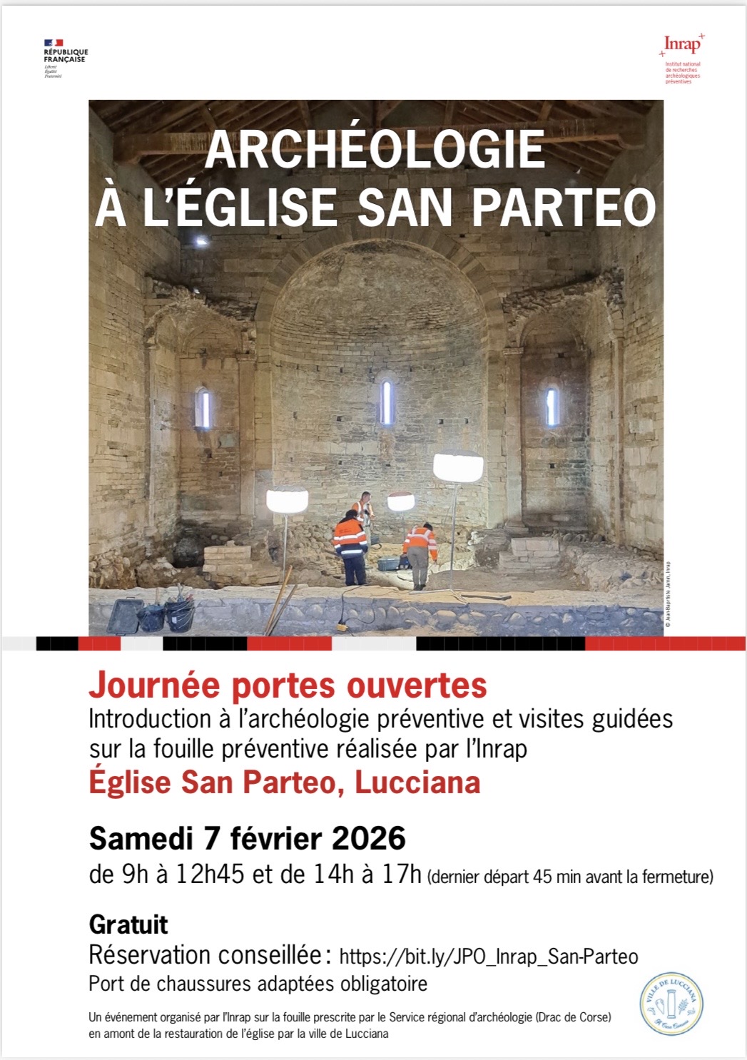 Dans le cadre de ses missions de service public, et afin de partager au plus grand nombre les découvertes réalisées, l’Inrap organise une journée portes-ouvertes sur le chantier ce samedi 7 février, de 9h à 12h45 et de 14h à 17h réservation, gratuite mais conseilléehttps://bit.ly/JPO_Inrap_San-Parteo)