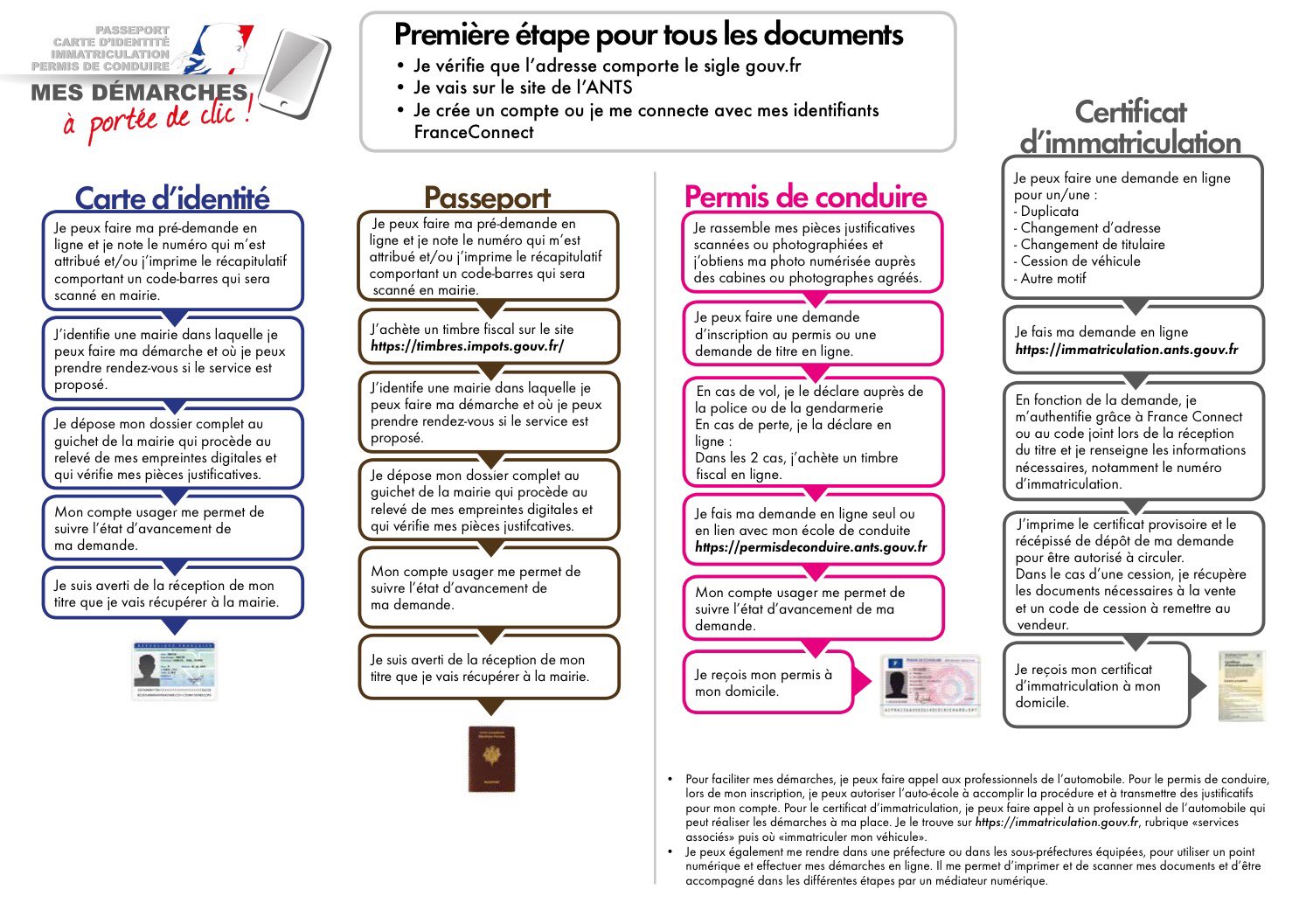 Concernant les demandes de CNI, Passeport, Permis de conduire, Certificat d’immatriculation, retrouvez ci-dessous les étapes à effectuer via internet :